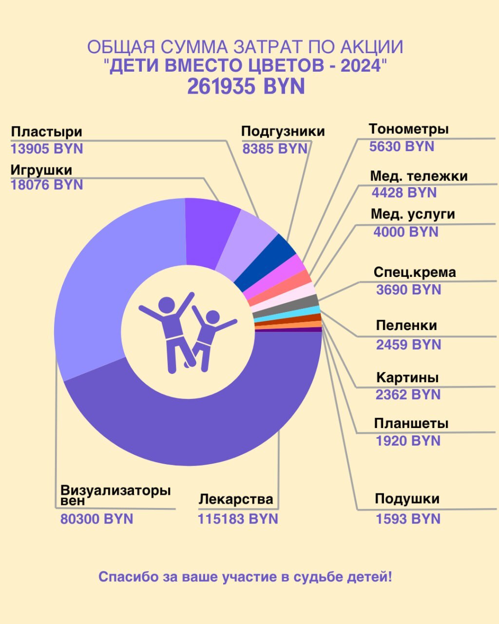 Жизненно важное лекарства для 10 детей – 115 183,12 BYN;